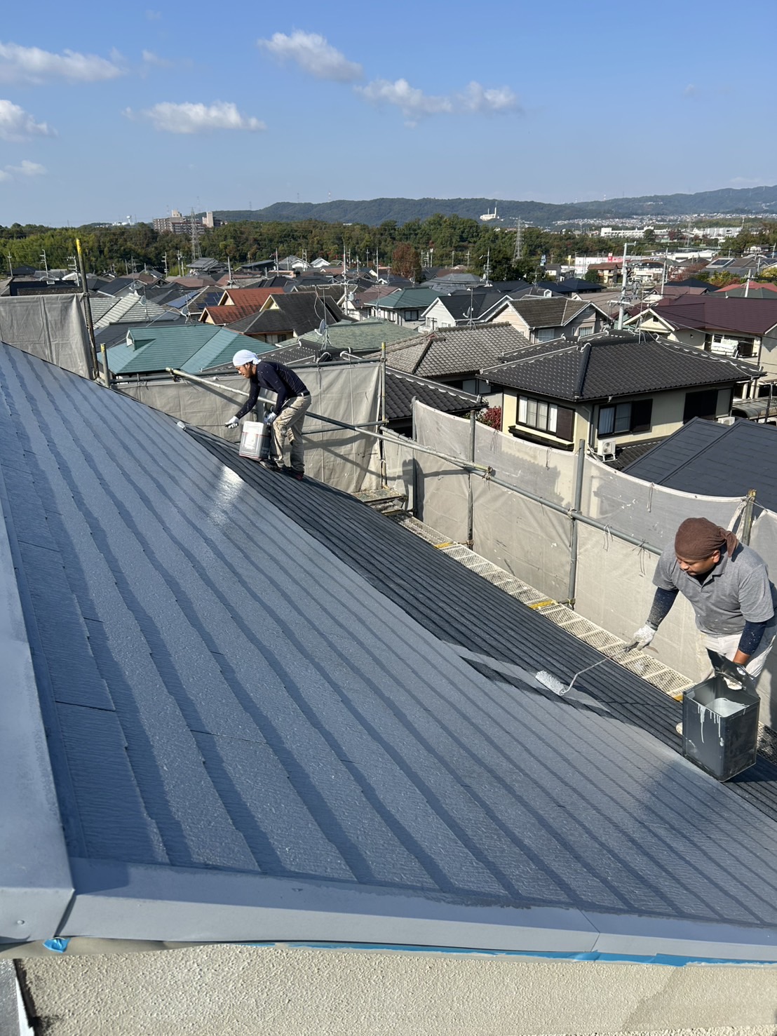奈良市の戸建て一軒家、屋根塗装工事を進めております。